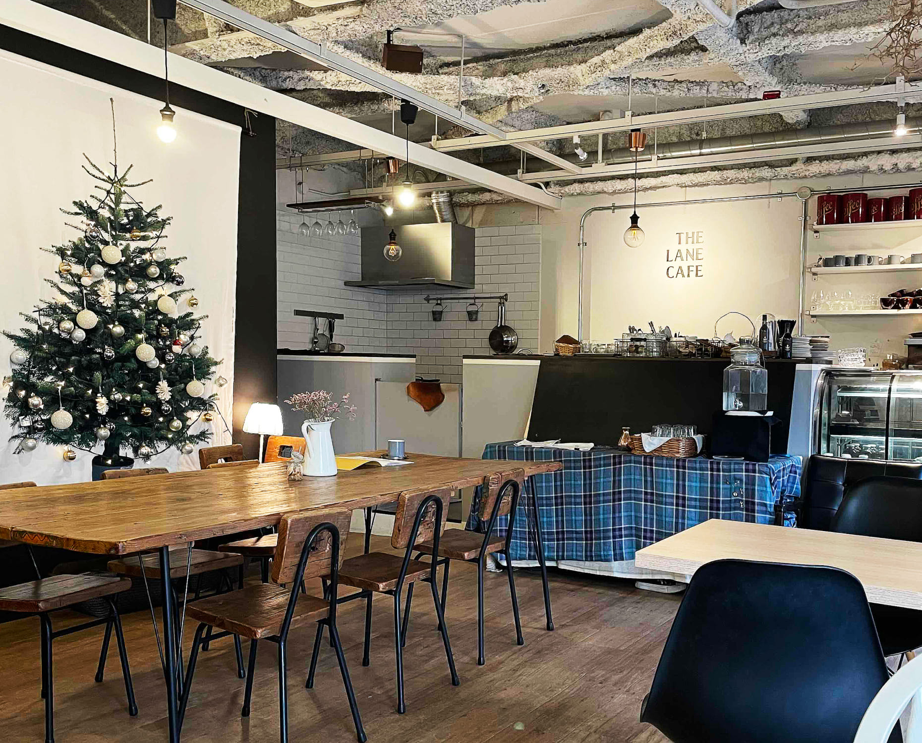 駅から近い便利なロケーションにあるザ レーンカフェ。おすすめのメニューは数量限定のオールタイムブランチセット。クリームチーズとチキンのサンドイッチ、スコーン、季節のデニッシュにサラダが付いてくる盛りだくさんな一皿。