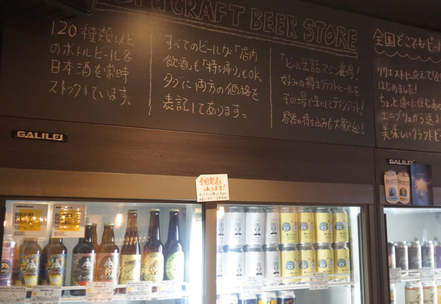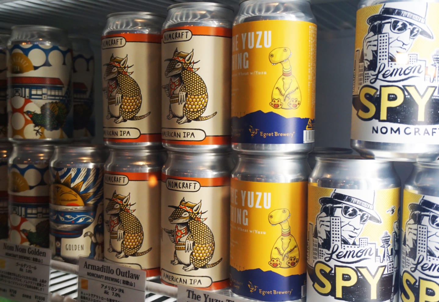 13種類のクラフトビアサーバー以外にも冷蔵庫には100~120種類の世界中のクラフトビールがラインナップ。常に入れ替わっているので、お仕事帰りにビールを買いに来るのを楽しみにしているお客様もいるのだとか。味わいや生産地だけでなく、デザインもキュートなものが多いので気分と直感で選ぶのも面白い。