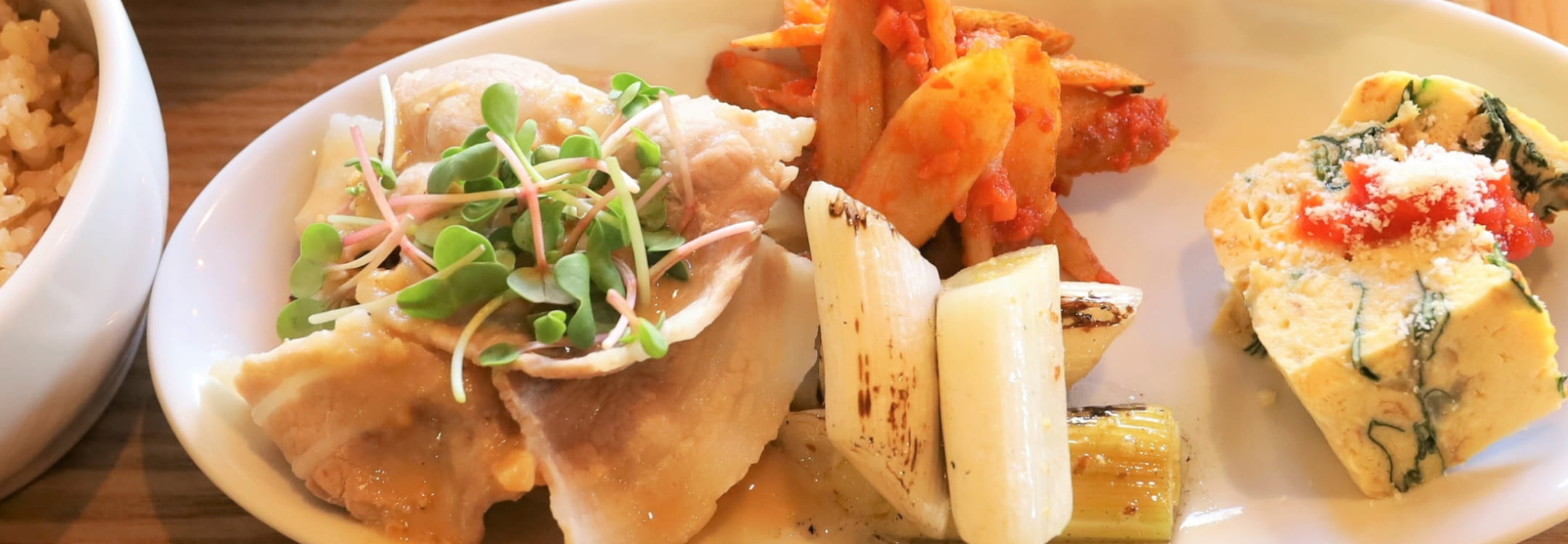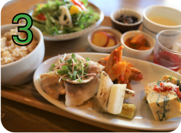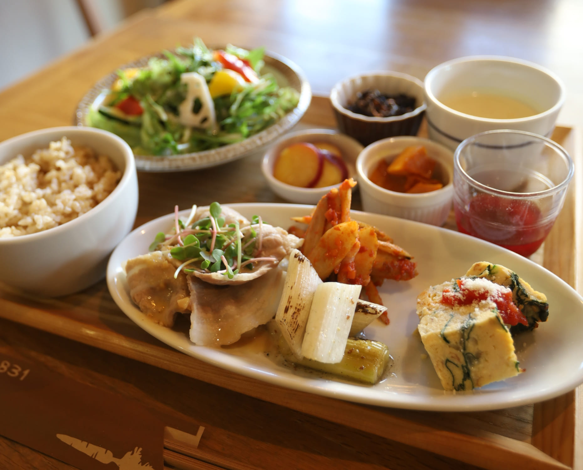 玄米かパンを選ぶことができるのもうれしいポイント。いろとりどりの野菜が使われていて、見た目から楽しめます。素材が活かされたやさしい味付けは、幅広い年代層に好評です。