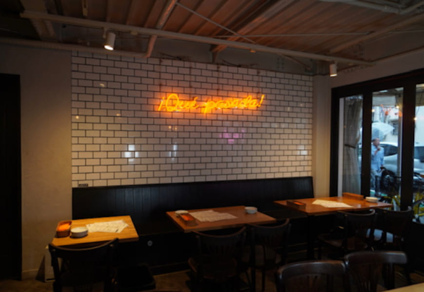 和やかな雰囲気のスペインバルは気軽に入れる雰囲気でありながら、夜はライトアップされておしゃれ。ワイワイと会話が弾む店内はいつも賑わっています。