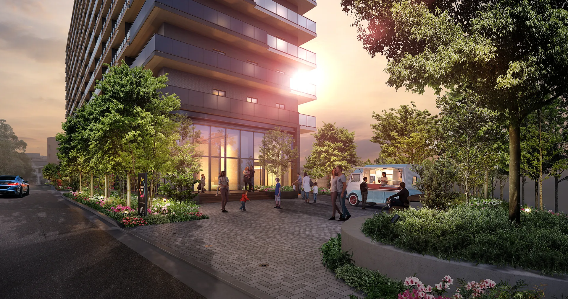 ゆとりある敷地だからこそ実現できた「向陵公園」と一体的につながるマルシェパーク(広場)。