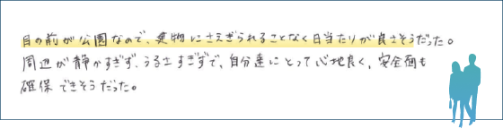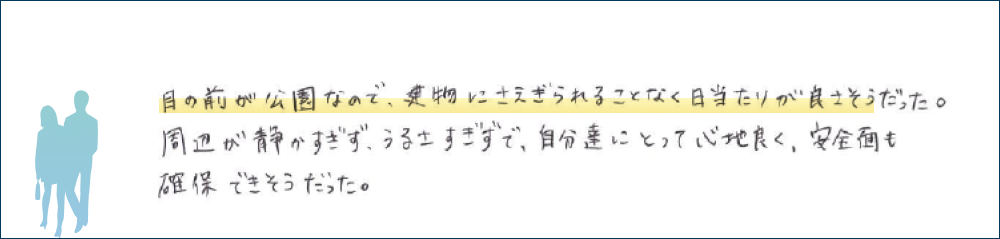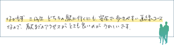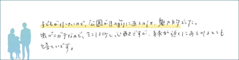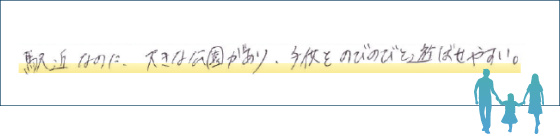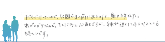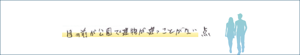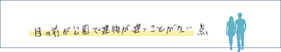 水と緑が近い健やかな住環境 - 水と緑あふれる「向陵公園」の潤いと、「なかもず」「三国ヶ丘」の利便性、そして「三国丘中学校」区という安心がそろう、家族にうれしい住環境が評価されました。