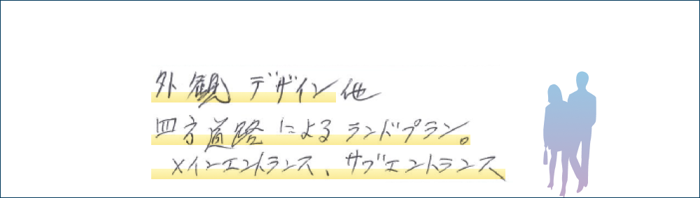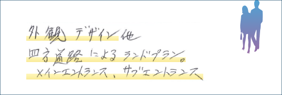 - ※ 掲載の完成予想図は計画段階の図面を基に描き起こしたもので、実際とは異なります。また、変更となる場合がございます。雨樋、給気口、スリーブ等、一部再現されていない設備機器がございます。また、タイル・石貼等の大きさは実際とは異なります。植栽は計画段階のものであり、変更となる場合がございます。また、入居時を想定して描かれたものではございません。葉の色合いや枝ぶり、樹形は想定であり、竣工時には完成予想CG程度には成長しておりません。周辺の建物、電柱、電線、標識、ガードレール等はライン等で表現しております。周辺環境は将来にわたり保証されるものではございません。