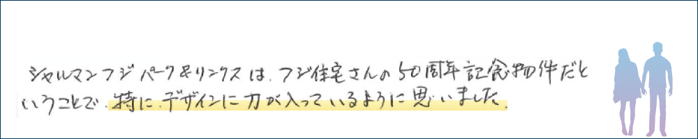 - スタッフの丁寧な対応や検討しやすい価格、シャルマンフジシリーズの実績に加え、オリコン顧客満足度ランキング近畿エリア5年連続第1位という信頼の証が評価されました。