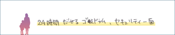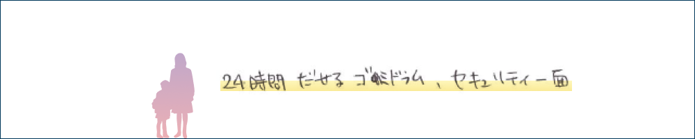 - 24時間いつでもゴミ出し出来る便利なゴミドラム